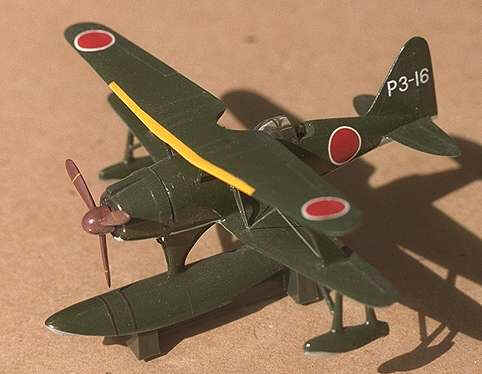 Comments: Probably Japan's last operational front-line biplane, the Pete was a common site during the early days of the war. Japan was not able to build airbases as quickly as the now famous Seabee's, so relied a great deal on seaplanes and floatplanes to provide air cover in forward areas. The Pete was the last in a line of successful Mitsubishi floatplanes and served until the end of the war in a variety of missions. Initially developed to provide reconnaissance and spotting for the cruisers and battleships of the Imperial Japanese Navy, the Pete was also used as a fighter, bomber and night intruder. Its sturdy biplane construction made it an extremely difficult target as it was quite capable of outmaneuvering any adversary.