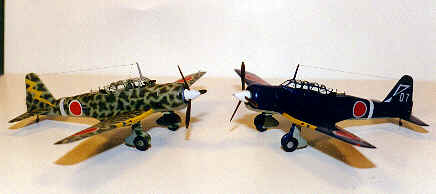 Both planes took about 20 hours apiece to complete the basic construction. The mottling on the attack aircraft took up about an additional 4 hours, but was well worth the effort, making a distinctive addition to my Japanese collection!